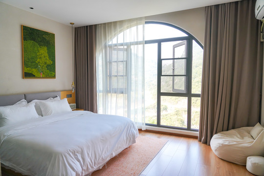这家花园民宿设计感强,一栋二层小楼,对面就是连绵起伏的山脉,拖开窗户,视野毫无遮挡,让人瞬间心情舒畅,可以到顶楼的露台坐一坐,晒晒太阳,放空自己