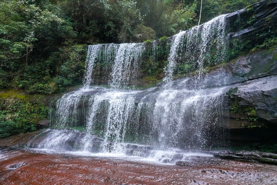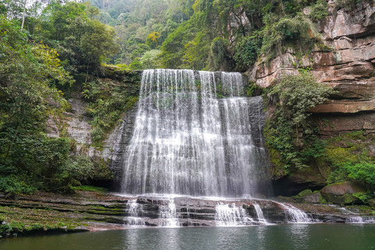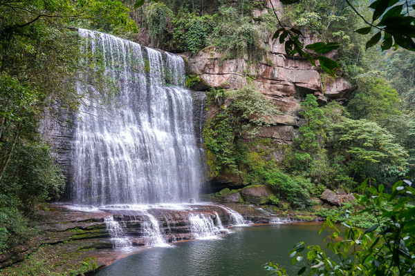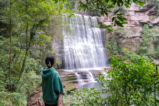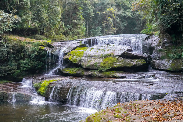 黄荆老林旅游景区内有八节洞瀑布群、环岩、普照山、红龙湖、官山、笋子山6个景区,其中的八节洞是必打卡之地,八节洞瀑布群位于黄荆老林的西北角,蟒童河水急流而下,自上而下形成了1400米长的八级险滩,共有大小八个瀑布,故名八节洞,总落差达120米。