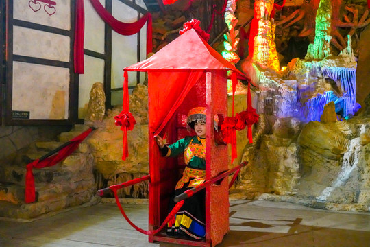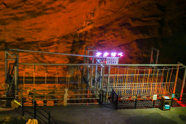 大黑洞溶洞内高差最高,达到300多米,正因为这独特的超大洞内空间,大黑洞不同于其他溶洞,溶洞内竟然有各种游乐项目30多项,简直就是一个超大游乐场,在溶洞里面体验一下网红秋千,前方是伸手不见五指的溶洞,下方是暗黑的水流声,超级刺激,在溶洞内玩超级大秋千,你肯定没有感受过吧!