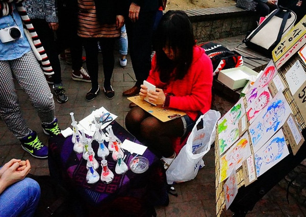 在仙游岛待到了下午,我们去了弘大,弘大周末有跳蚤市场。