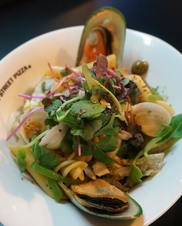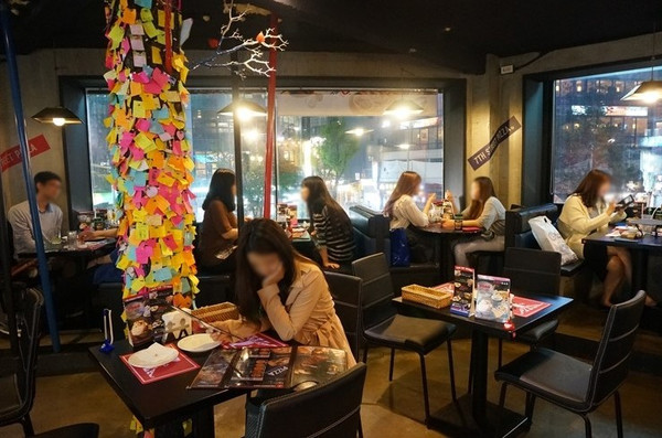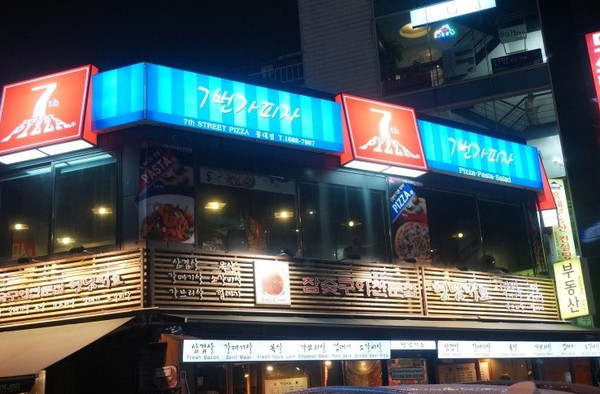 结束后,我们在弘大找吃的,这家叫什么?7号街披萨