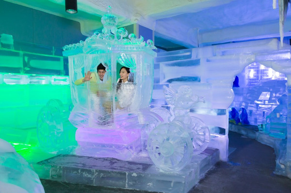 里面都是冰做的,温度我进去的时候是零下3度。这一进去就是瞬间冰冻啊,哈哈哈哈