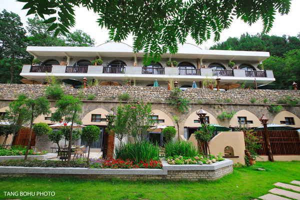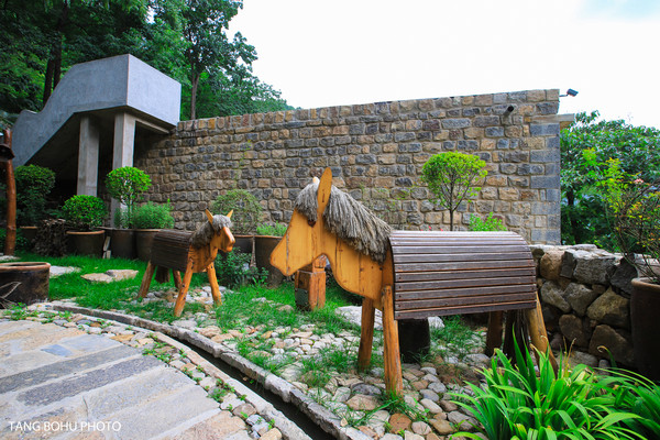 古老的石墙与木质结构的结合一瞬间把你带入穿越到几十年前的小乡村一样。这里景色优美,宁静悠闲,随处可见的大树草坪鲜花,这里更是空气清新。走在路上你会发现有好多可爱的路灯,还有沿路的流水小鱼,可以看出设计师的精心设计,很让人想长住在这里感觉,仿佛就是一个世外桃园一样温馨舒适。
