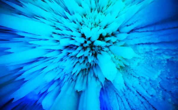 沿着一路下来后,我们就来到了云丘山冰洞群,进入冰洞发四壁皆冰,常年不化。目前开放的1号冰洞总长100余米,最宽处约12米,最高处约15米。洞中的冰笋、冰柱、冰瀑晶莹剔透,在灯光的照射下呈现出梦幻般的景象。