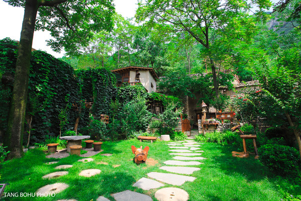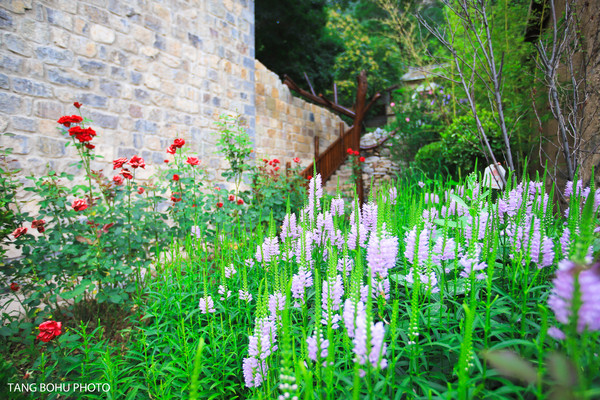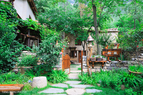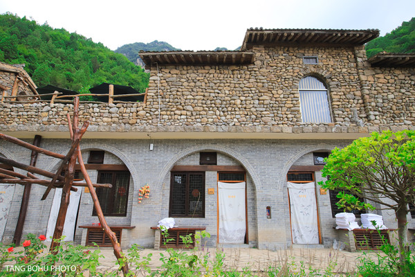 沿着小巷子走,路是用石头铺的石板路,古朴又宁静,建筑的墙大多是石头,这也成了这里民宿的一大特色,在整个康家坪村都是各种风格的民宿,有房间是比较现代风格的,也有窑洞风格的,可选择性很高。整个村庄种有好多鲜花,这里远离城市的嘈杂,非常的惬意,适合发呆,适合带着家人和小孩一起到这里小住几天。