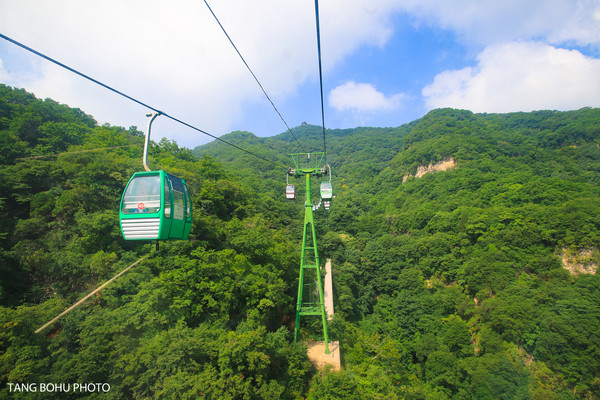 看完过后,走一段小路就来到了坐缆车的地方,建议坐3号索道缆车到玉皇顶的,坐缆车的好处是可以节省很长的时间,而且坐在缆车上可以欣赏到缆车外的景色是个不错的选择。我当时还以为坐缆车没一会就可以到山顶了,结果是我想多了,坐缆车要坐约20分钟左右才能到达山顶,感觉还是比较长的缆车。当然了,如果你喜欢徒步的话,那得走近两小时才能到达达。所以,还是建议坐缆车上去,下山的时候走路下来是个不错的选择哦。