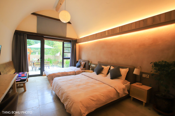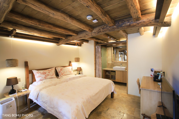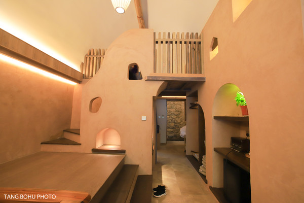 民宿是由台湾设计团队设计的,民宿的建筑风格在保留晋南窑洞特色的基础上进行了大胆的创新,让已有百年历史的传统窑洞,在变得更有品质的同时,还具备了家的柔软和温度。