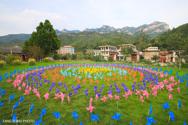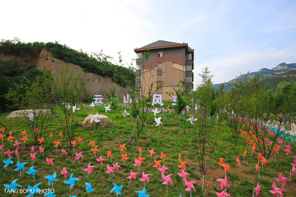 在景区入口处有好多风车,随着风轻轻一吹,五颜六色的风车翩翩起舞,在风中快速的飘转起来,不单是在景区入口处有风车,在景区的山上小路上随处可见的风车,给景区增添了不少美丽的色彩。