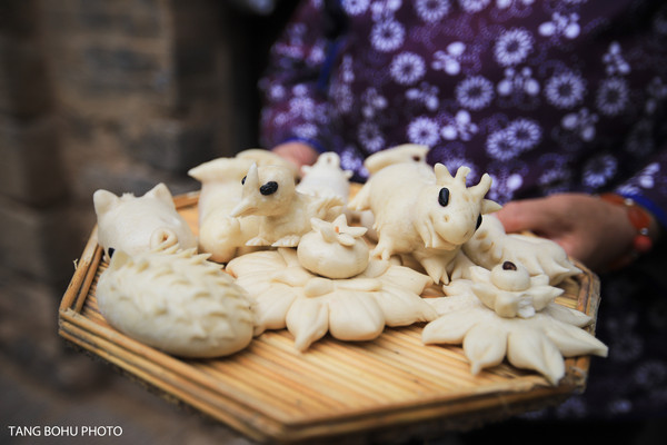 走在塔尔坡古村落,这里一大特色莫过于窑洞的建筑风格了,第一次来到这里的游客无不被这种独特的建筑深深的吸引住,馍在古村里不能少,不管是红事白事馍和日常食用馍。这种造型优美,栩栩如生的各式图案花馍,色泽诱人,形状饱满。
