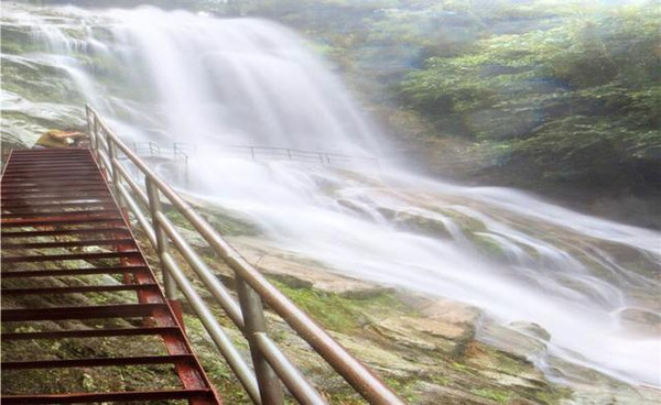 说起石台县的瀑布,不得不说的就是牯牛降风景区内的四叠瀑布,一条瀑布被分段成四段不同形状的瀑布,依然气势磅礴。其实百丈崖风景区,也隐藏了一条壮观的瀑布,它虽然没有四叠瀑布的分段气势,但是它高约百米、宽约20米,常年水流不断称绝于世。