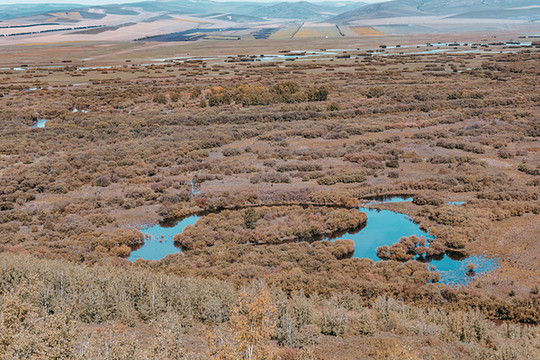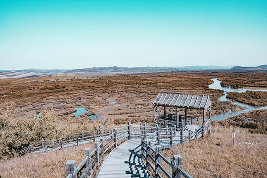 tips:站在最高的观景台可以看到远方的柴河镇,围绕卧牛泡子有一条环湖公路,目前也正在修路,暂时处于封闭状态,进不去。