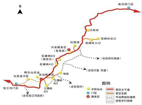 露营地——乌苏浪子湖——不冻河——天池服务区——驼峰岭天池——大峡谷——杜鹃湖——天池——柴河