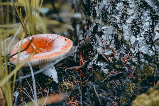 走至一片树林,受雨水的滋润,草丛中密密麻麻地生长出来一群蘑菇,这种蘑菇也不知道是不是能食用的蘑菇,我们也不敢轻举妄动。