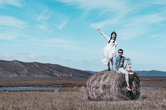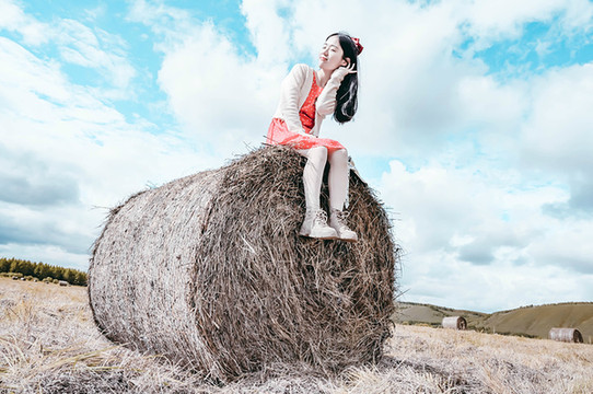 拍照一时爽,拍完四眼泪汪汪呀!果然冲动是魔鬼!我们过于激动的丢下车子,冲到草垛那里,根本没有想到会有什么后果。由于我们租的联动云汽车是由手机控制开关车门的,下车时没有留意手机有没有信号,直接关车门走人了。回来时才发现这里手机没有一格信号,车门肯定是打不开了,两个人站在车前凌乱了……