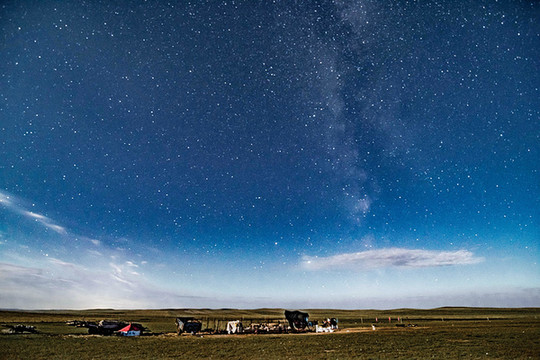 好巧不巧,这时天公也不作美了,草原的天气说变就变,刚刚还行空万里,转眼就乌云密布,风越吹越大,两个人被风吹的直哆嗦。