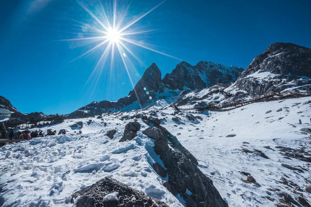 山上阳光真的很刺眼,还有白白的雪,看多了眼睛也不舒服,所以建议戴墨镜吧,我没有戴隐形,但实在刺眼,后来就直接带墨镜了,暂时瞎一会,毕竟不戴眼镜还能看清路