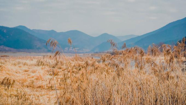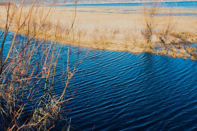 水很蓝,配上黄色的草和芦苇,好看 这个季节会有很多鸟类,所以,湖边并不是很安静
