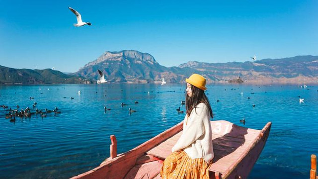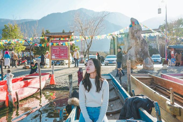 拉市海 因为现在拉市海收到政府下达的文件,游客不能在拉市海里划船了,要保护水源,但是周围的景色也是很震撼的 比较适合我俩这种文艺小女子哈哈