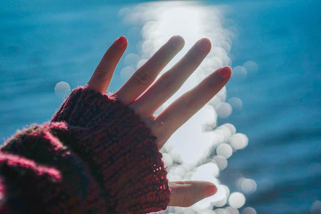 耶稣光照下来到湖面上,亮晶晶的