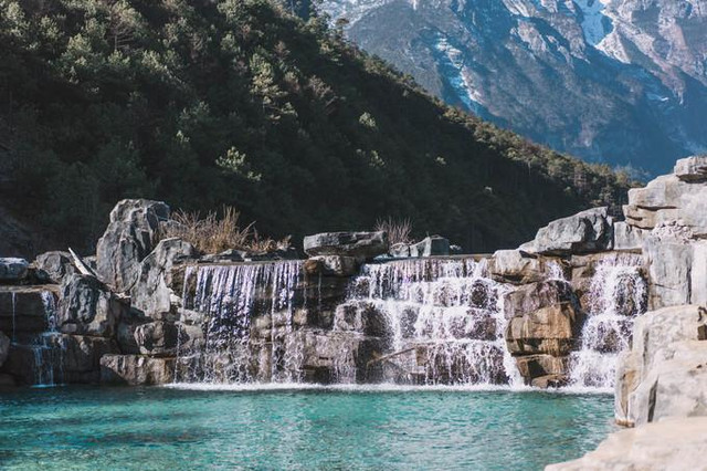 我们的第一站去了蓝月谷 到了篮月谷,水确实很清澈,这边的水有点偏绿,到了白水河那边会变得很蓝,如果是下雨天的篮月谷的水是像牛奶一样,和现在完全是另一种样子~我们开始了各种见缝插针,人实在太多了,人都走来走去的,实在是不太好拍