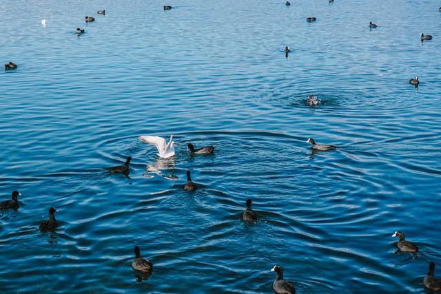 这里的海鸥真的是吃货哈哈哈哈。说到喂海鸥也是有讲究的。要看朝你方向飞过来的海鸥,然后往高了扔,总之就是刚好在它飞到那里时扔到那个位置,它才能吃到。开始我也不得要领,一包面包差不多都喂不到,全都掉水里了,便宜了鸭子们 每次说这句话,小伙伴都说鸭子到底做错了什么 有时候海鸥没吃到掉在水里了,它还会想飞下去找,但是一般一掉在水里,鸭子们也飞快的抢了,所以经常看到海鸥“一路追杀”鸭子