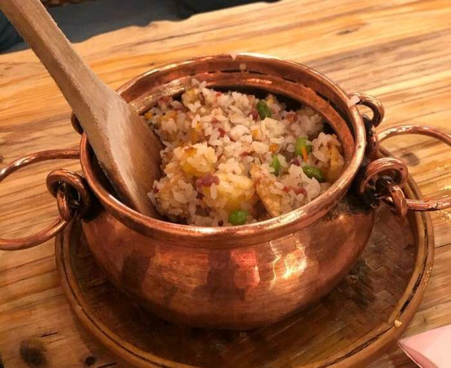 小锅饭店家的招牌菜就是小锅焖饭米饭配油炸土豆块萝卜丁肉丁青豆,口感丰富,不油腻,不愧是招牌菜到店必点~
