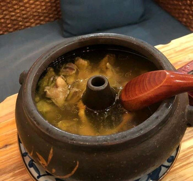 汽锅鸡鸡肉都是小块的汤很好喝,特别甜美…店家给配了三七粉口感更加