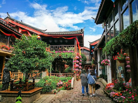 它与大研古城是不同的,如果说大研古城给人的感觉是热情奔放,那么束河带给你的便是安静祥和。这个小镇距离丽江不远,在丽江古城内乘坐公交6路或者11路车都可以到达,下车后顺着街道一路溜达进去,你会发现路上有牛粪,两边有农田菜地,呈现给你的是一幅田园生态图,让人误以为是到了某个桃花源而不是一个有名的古镇景区而束河与丽江相同的是什么呢?是“慢”。两个地方都是不急不躁,任时光飞逝也与我无关。在束河古镇是没有时间的紧迫感的,可以一天到晚无所事事的在古镇各个角落瞎逛,也能在客栈阳台泡上一壶茶坐半天时间,再或者拉着客栈的狗出去漫山遍野的跑,还能与当地人一起到山里捡菌在这里最不值钱的是时间,而最珍贵的是阳光束河古镇,丽江没有什么所谓的“最佳旅游时间”,只要你愿意,随时过来都是一样的美。束河古镇也是如此,这个小镇在每一天都会将自己最好的一面展现给你,喜欢与否全凭游客决断