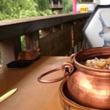每个人戴一个牌牌,进了这家的客厅,书房...随便逛逛。当然我们没去楼上参观,只在下面逛。玩到11:50也累了,就出门找车吃饭去。张师傅是本地人,他熟悉这里的情况,找饭店自然靠他了。他开车带我们找了一家很多人在吃饭的店。进了门没空桌,只能先等着,两位女士就先去看看有啥菜适合我们吃。等我们等到了座,就直接点菜了。一个汤煲,一盘炸排骨(整根的八根),一个炒菌菇,外加两个蔬菜。五个人吃了280元,都吃饱了,大家都满意。