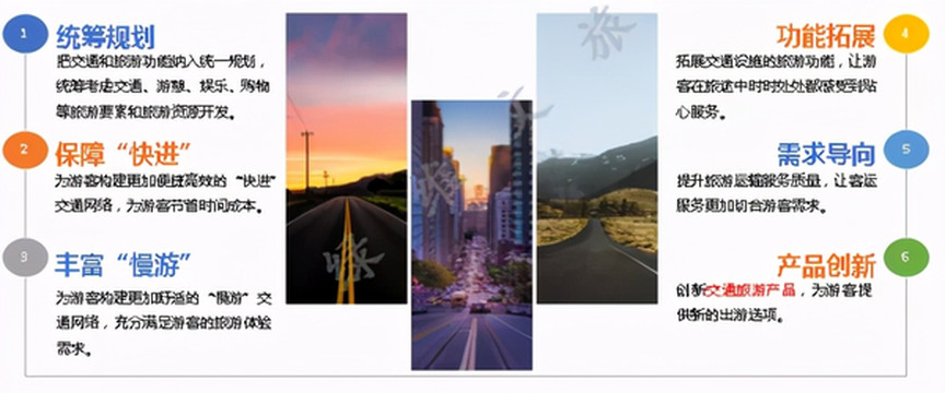 2017年2月,交通运输部、国家旅游局等六部门发布《关于促进交通运输与旅游融合发展的若干意见》,提出构建“快进”“慢游”旅游交通基础设施网络。统筹规划、保障快进、丰富慢游、功能拓展、需求导向、产品创新基本概括了发展框架。