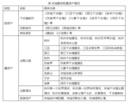 宋城集团主业为文化演艺、旅游景区、娱乐综艺、主题酒店等,确立了“宋城”、“千古情”等品牌,产业链覆盖旅游休闲、现场娱乐、互联网娱乐,总资产超过700亿元。