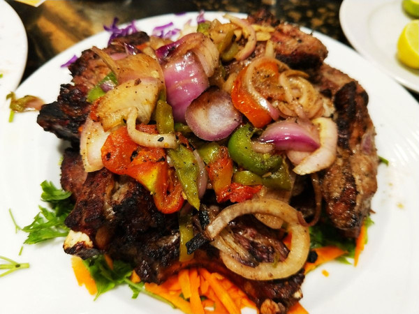 晚上继续我们定点的烤肉店,除了前一天我们吃的烤肉,今天又增加了一些烤海虾等等,说实话,真想来瓶啤酒,可惜啊——没有!