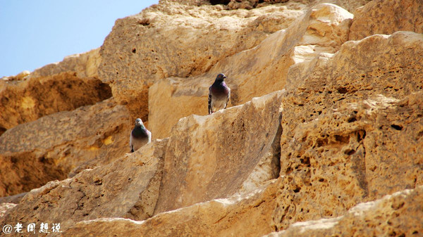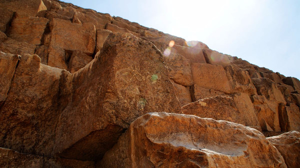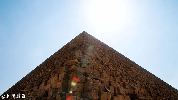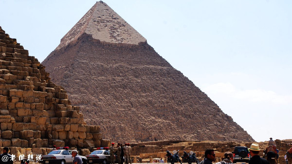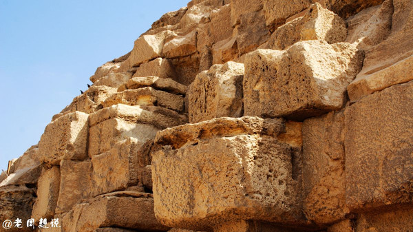 海夫拉金字塔,只有这个金字塔的顶端,还残留这当初建成时表面的装饰石(石灰石),看起来是平滑的,而其他金字塔塔身都只剩下斑驳陆离的石块。