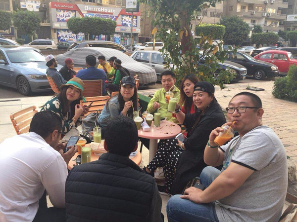 回到开罗城区还早,大家还不是很饿,我们就跟着老闪走回我们的指定果珍店喝果珍,哎,上瘾了,不喝难受,哈哈