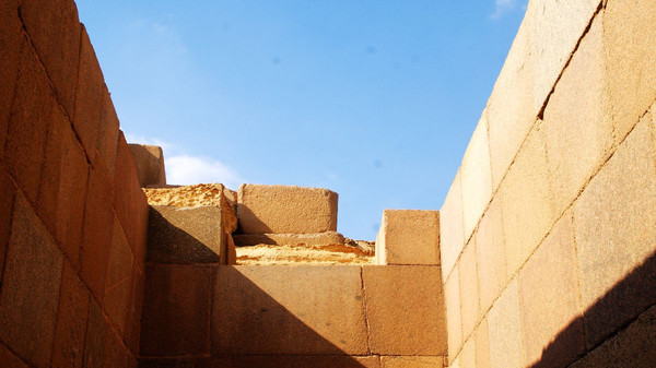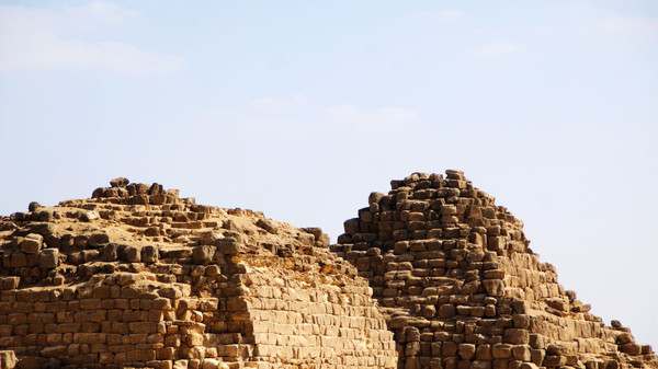 门卡乌拉金字塔比胡夫金字塔和哈夫拉金字塔小的多,仅65米高,工程量仅相当于胡夫金字塔的十分之一,在埃及现存金字塔中排行第九。它的基部建筑全部用的花岗岩。这种努力可能是因为国王的早逝而停止。由于其“小”,未遭盗墓者破坏。1839年,一名英国探险家首次打开这座金字塔,在墓室中发现一具花岗岩石棺及法老木乃伊。但装运这些文物的船只在返回英国途中遭遇意外,石棺和木乃伊都沉入大西洋。哎!败家玩意!旁边的那三小型金字塔,是属于皇后的金字塔,但都没有完工。