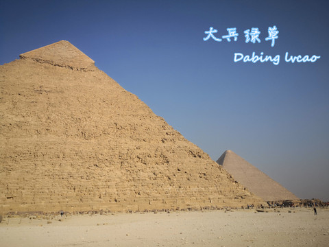 吉萨金字塔群中最大最高的是胡夫金字塔,它是世界上体积最大单体建筑,在它的西南面略小一些的是胡夫的儿子的哈夫拉金字塔,再往西南、更小一些的是胡夫孙子的孟卡拉金字塔。