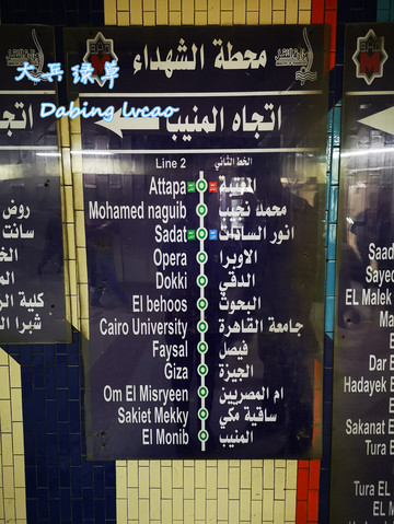 据说地铁是开罗现在唯一不堵车、少误点的交通工具。我们参观完拉美西斯火车站、法塔赫清真寺后,原打算乘坐地铁前往新开罗地区,但由于语言不通,问了好几个人也没有弄清楚乘坐方向和换乘站,只好随意乘坐两站又返回,算是感受了开罗的地铁。
