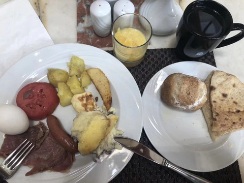 然而,我们当当落地,准备转机去卢克索的时候,因为按照既定的旅程,到达埃及的行程安排是第一站在卢克索,然后是红海,再然后是开罗,最后再飞回国。可是,计划赶不上变化,因为当天,埃及遇到了百年不遇的雨天,按照平时的情况,这个季节埃及是少雨的季节,但是,我们却遇到了下雨天,也因为下雨造成的大雾,卢克索的机场无法盲降,因此,航班一再推后,当我们一行人在机场等待中,大家也开始了讨论,要不就变化一下行程,既来之,则安之。让我们就从开罗开始了解埃及吧。导游小姐姐的用意是好的,她希望我们从埃及最古老的历史开端开始了解这个国家,但是,天公既然作美,我们就顺应天意吧。因此,临时安排了酒店,也临时安排了第二天的行程,我们要去看埃及国际博物馆了。