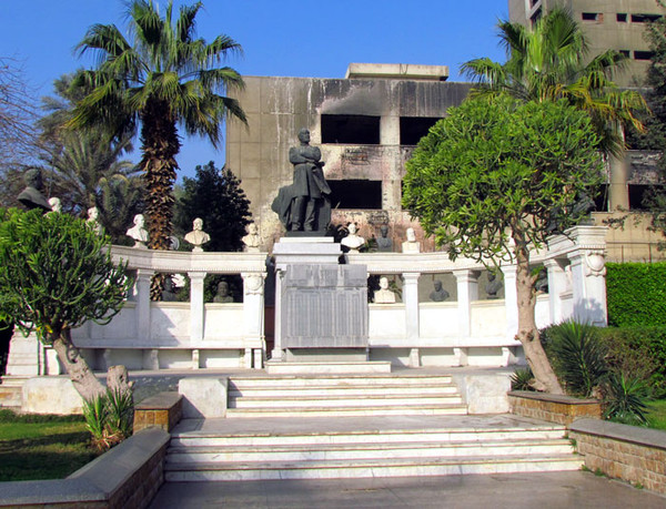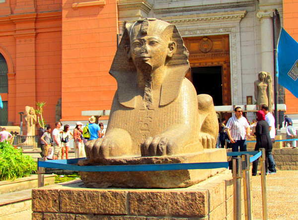 埃及博物馆花园般的庭院中,摆放的都是许多著名埃及学者的塑像以及斯芬克斯像、方尖碑、石刻等,充分体现了古埃及历史文化的文明。