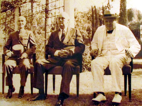 我过去一看,原来上面是蒋介石、罗斯福与丘吉尔三人的合影。他指了指照片中的蒋介石又指指整个房间,我一下明白了,原来这就是当年开罗会议时蒋介石夫妇下榻的房间。