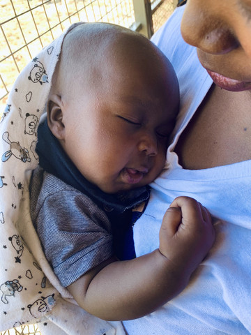 还在襁褓中的小婴儿,依偎在妈妈的怀里酣睡