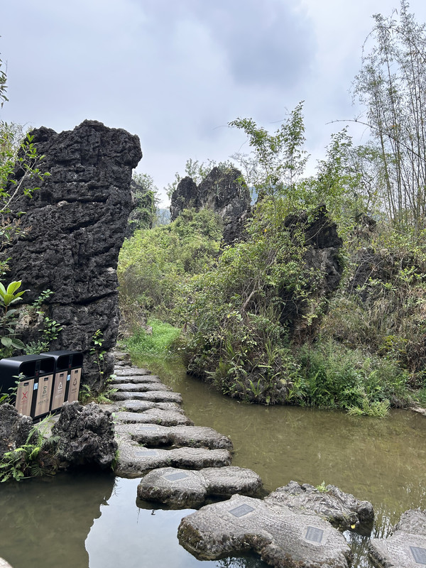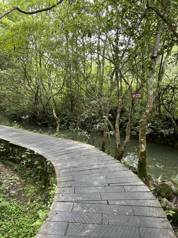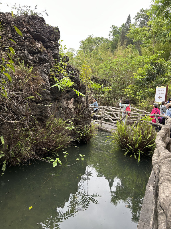 漫步水上石林,有吊桥,有石头,有林中小径,还有木栈道。