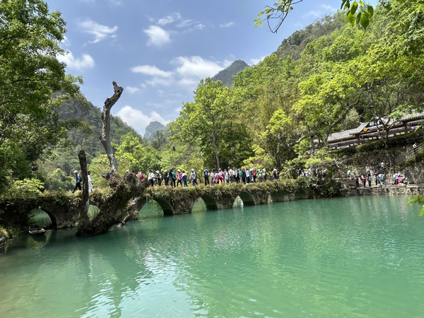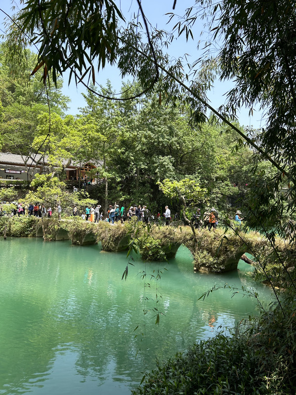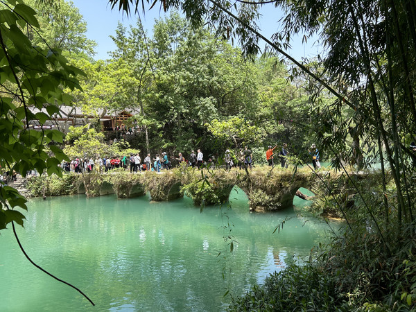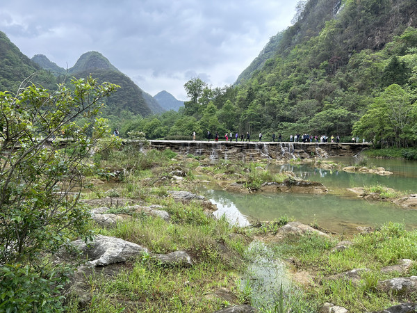小七孔古桥----景区之名由桥而得。这是一座小巧玲珑的七孔古石桥,桥长25米,桥面宽4米,拱高4米,建于清道光15(1836)年,昔为沟通荔波至广西的重要桥梁。