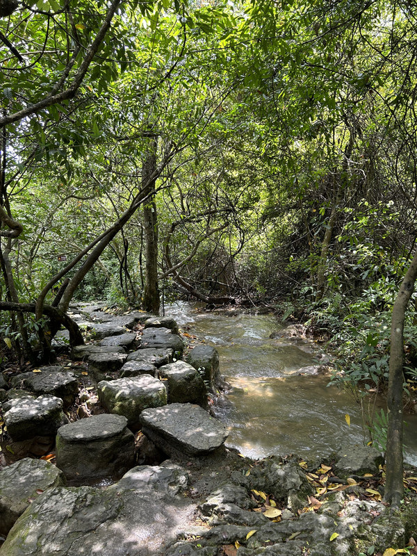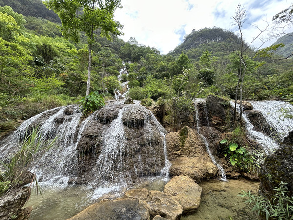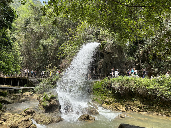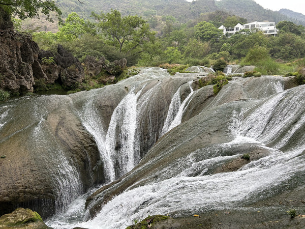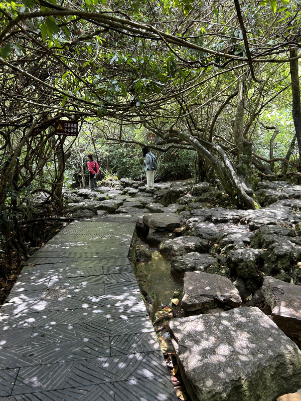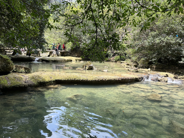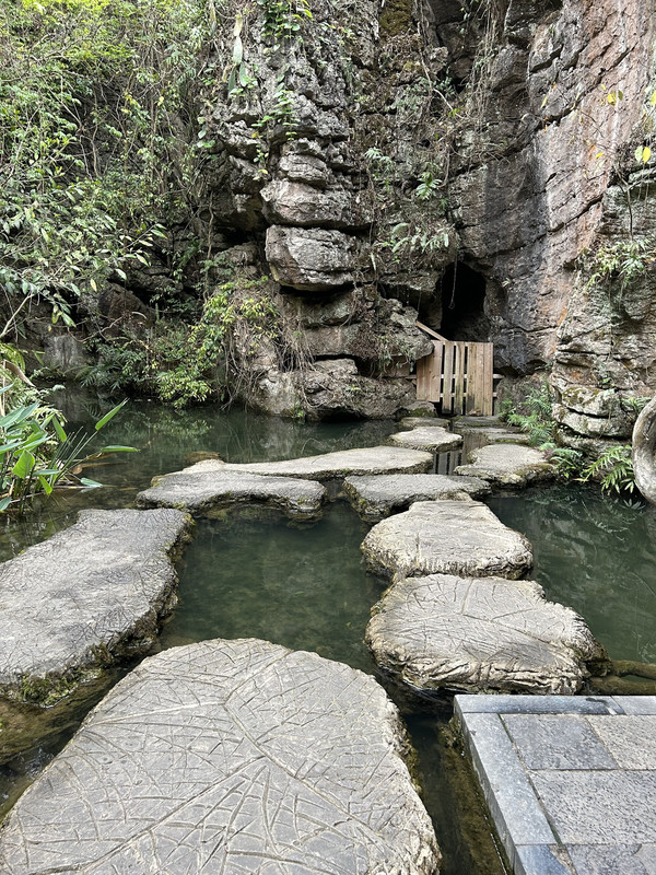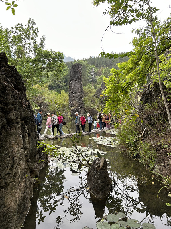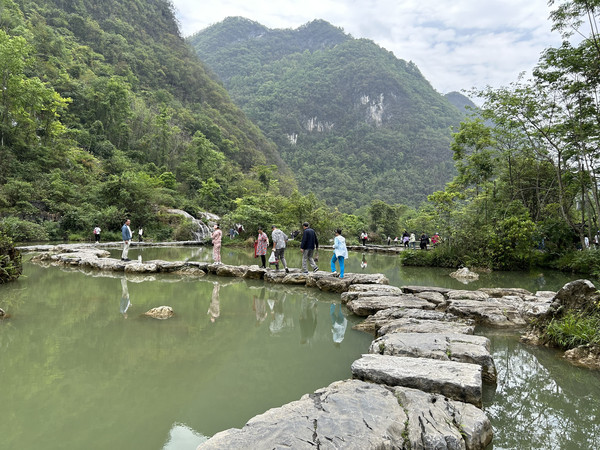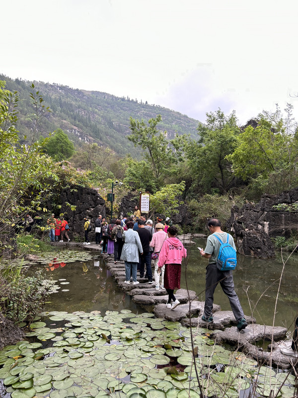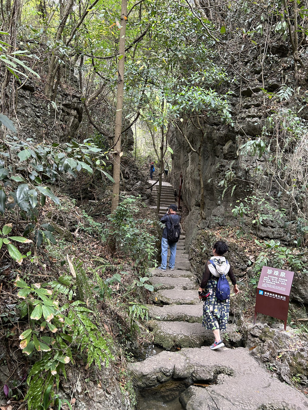 数生步是进入天星桥景区的第一个景点,这里水上有石、石中有水,石上又长树。数生步中最有特色的是,水位只比路面低一点,这里的水是活水,水面高出水位时,会随地势落到下一级水潭这道路象是浑然天成的杰作。