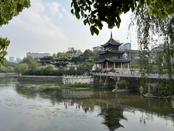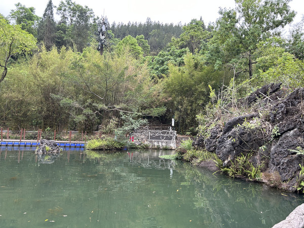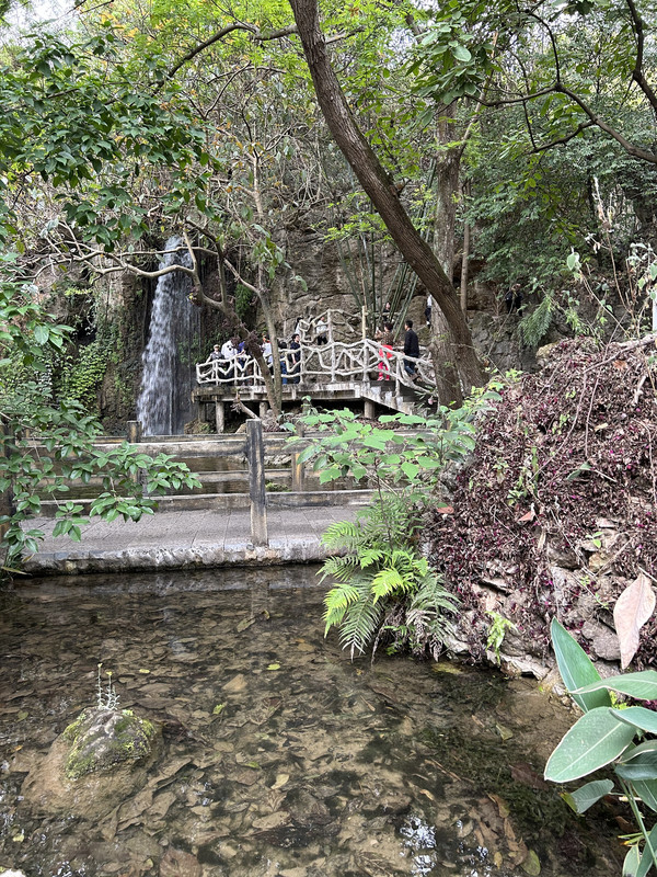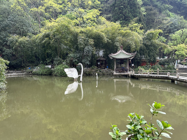 进入黔灵山公园南大门,首先看到的是七星潭,泉水从麒麟洞流向公园南门,形成七个阶梯状的水潭。