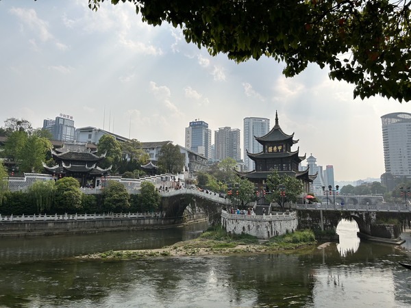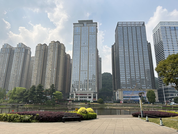 贵阳是一座“山中有城,城中有山”的国家森林城市,这座“林城”依旧保存着深厚的历史、文化、建筑、民族、城市记忆。作为贵州省会及最发达的城市,在起伏不平的丘陵之上,充分利用纵向的空间,形成了很多有层次感的城市景观。我入住的酒店就在贵阳著名的花果园。花果园到处是耸入云霄的高楼, 40层以上的高楼就达到了200多幢,每一栋楼内各式酒店就有7、8家之多,双子塔、白宫等魔幻建筑使花果园成为贵阳重要的繁荣中心。