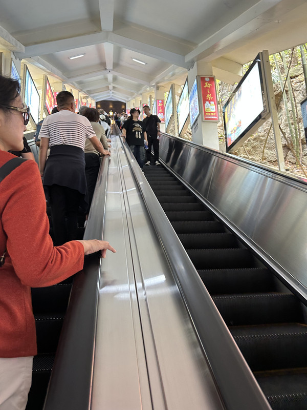 我游览大瀑布的线路是从瀑布入口徒步下,电梯上。这样可以自上而下全方位观赏大瀑布,也可省去返回时自下而上攀登的脚力。两节穿山电动扶梯,30元/人(单程)五分钟就可到达大瀑布景区出口。