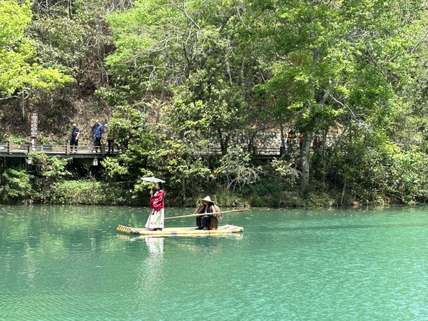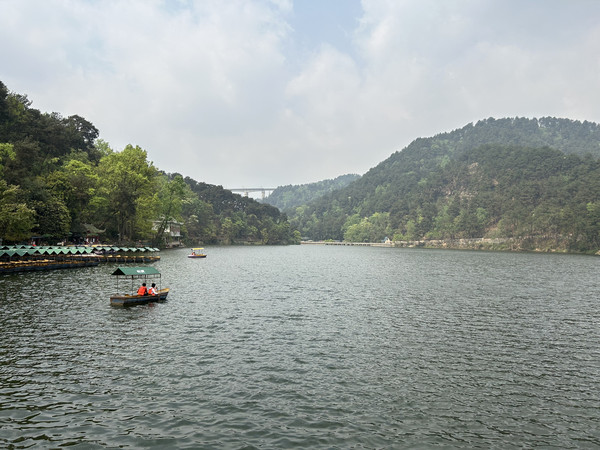 从大七孔景区码头乘船游玩,可观两岸郁郁葱葱,溪水奔腾,空气里都是大自然的味道。