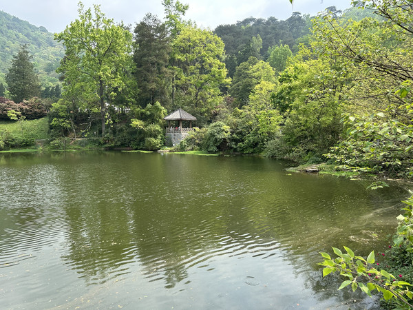 沿着1公里步道在林间穿行,徜徉在青山绿水之间,呼吸着醉人的空气,茂密的树林遮住了阳光,欣赏它芳草鲜美,落英缤纷的景致。