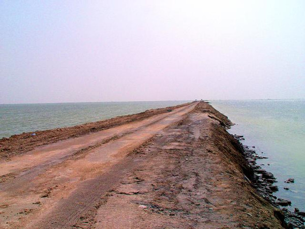 满载游客的大巴车队从格尔木市区经过大约近一小时的路程来到盐湖。途中,导游介绍说,车子所经过的路段是著名的万丈盐桥。万丈盐桥是格尔木至敦煌的一段从达布逊湖上穿过的公路,厚达15至18米的盐盖构成天然的盐桥,全长32公里,折合市制可达万丈,因此人们称其为“万丈盐桥”。